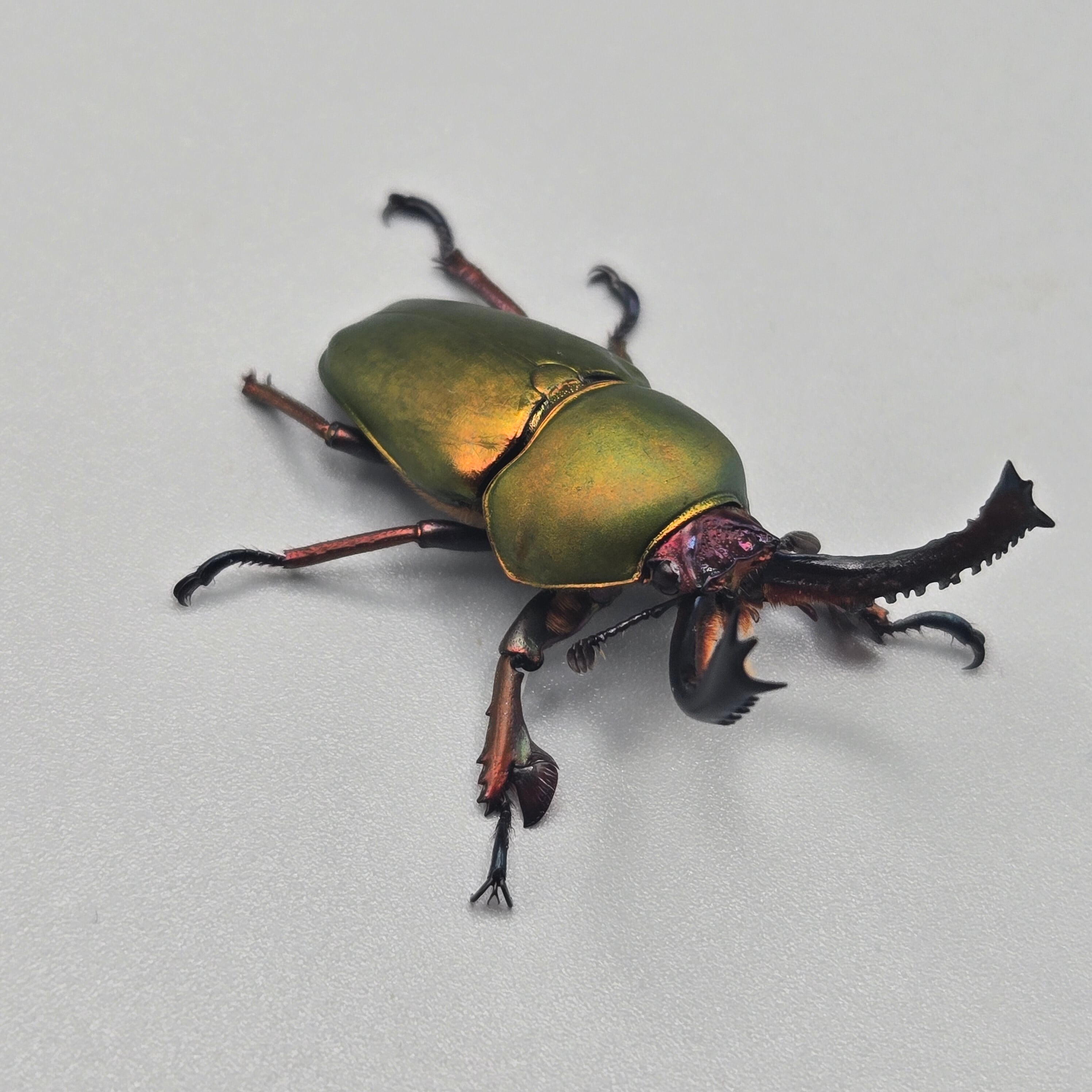 体色の色彩変異が多く、赤褐色、緑色、青色、金色などがありとても綺麗なクワガタ。