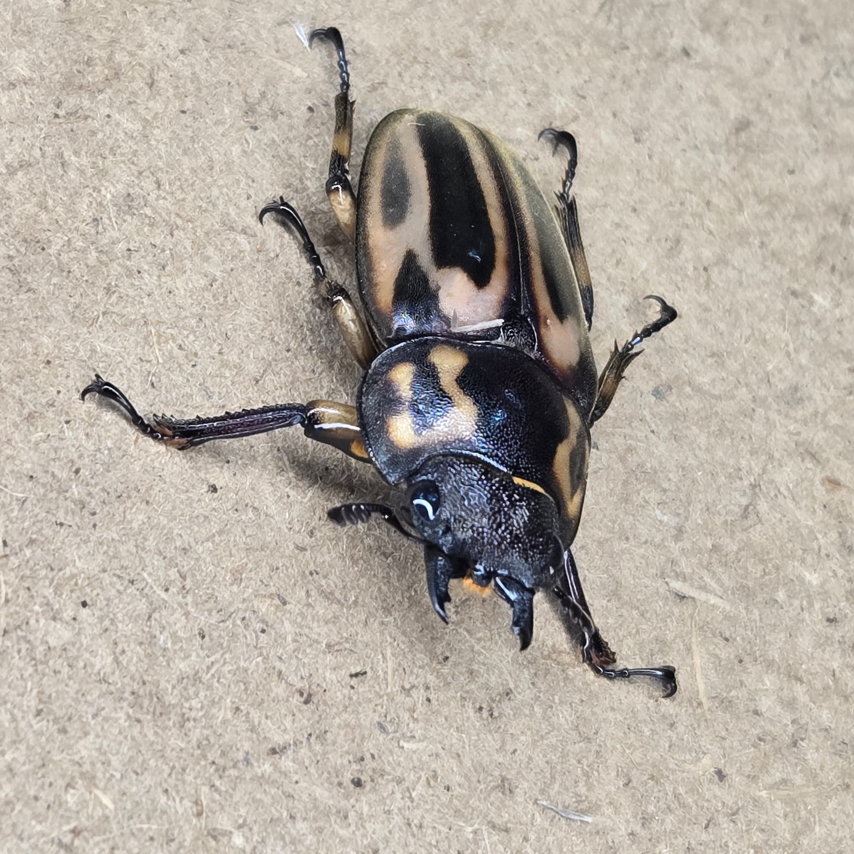 上翅は強光沢、脚は黄色で全体的に高発色。