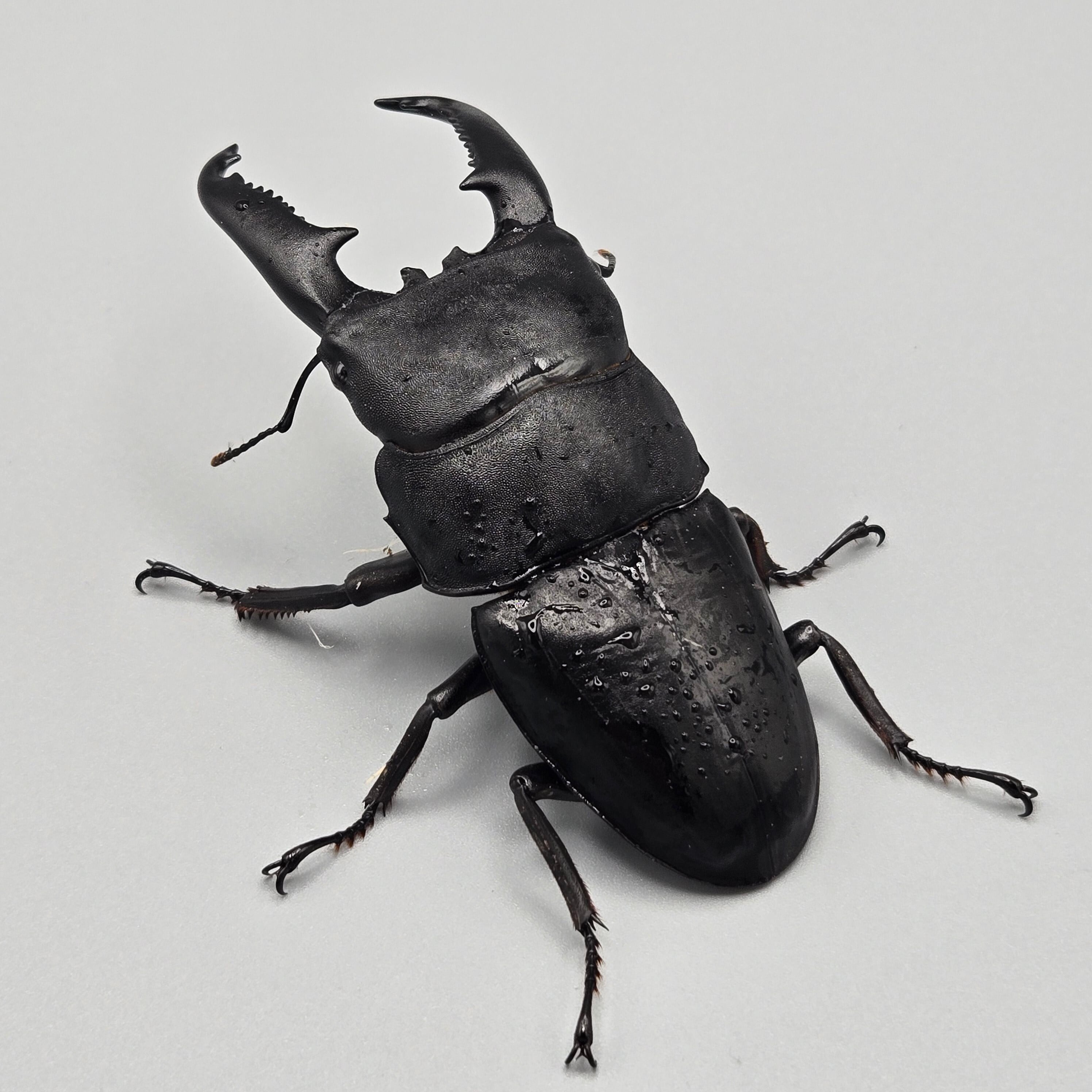世界最大級のヒラタクワガタとして知られる、迫力特化の王道種。幅広で厚みのある大アゴ、重戦車のような体型は「力強さ」を求める人に直球で刺さる。最大サイズを狙うブリードはロマン枠だが、通常飼育でも十分に存在感を楽しめる。